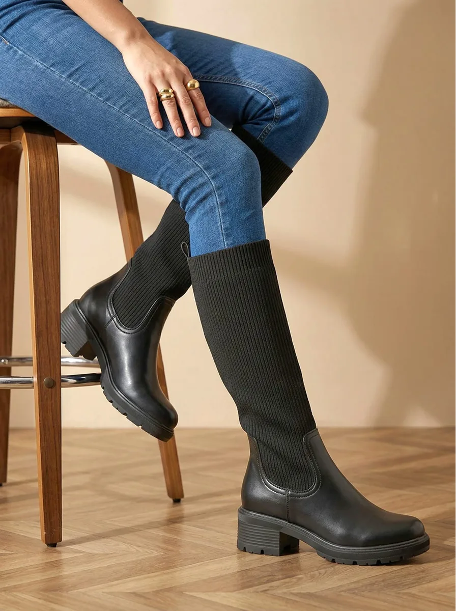 هذه الأحذية النسائية الطويلة تجمع بين الأناقة والراحة، حيث تأتي بلون أسود جذاب وتصميم عصري. تتميز بحشوة ناعمة من القماش المحبوك، يمنحك شعورًا بالراحة والمرونة أثناء الحركة، بينما توفر لك قاعدة سليكونية متينة لضمان عدم الانزلاق. بفضل كعبها العريض، يمكنك ارتداؤها بسهولة طوال اليوم دون الشعور بالتعب. إنها مثالية لمناسبات الخروج غير الرسمية أو للارتداء اليومي، مما يجعلها خيارًا متعدد الاستخدامات في خزانة ملابسك.