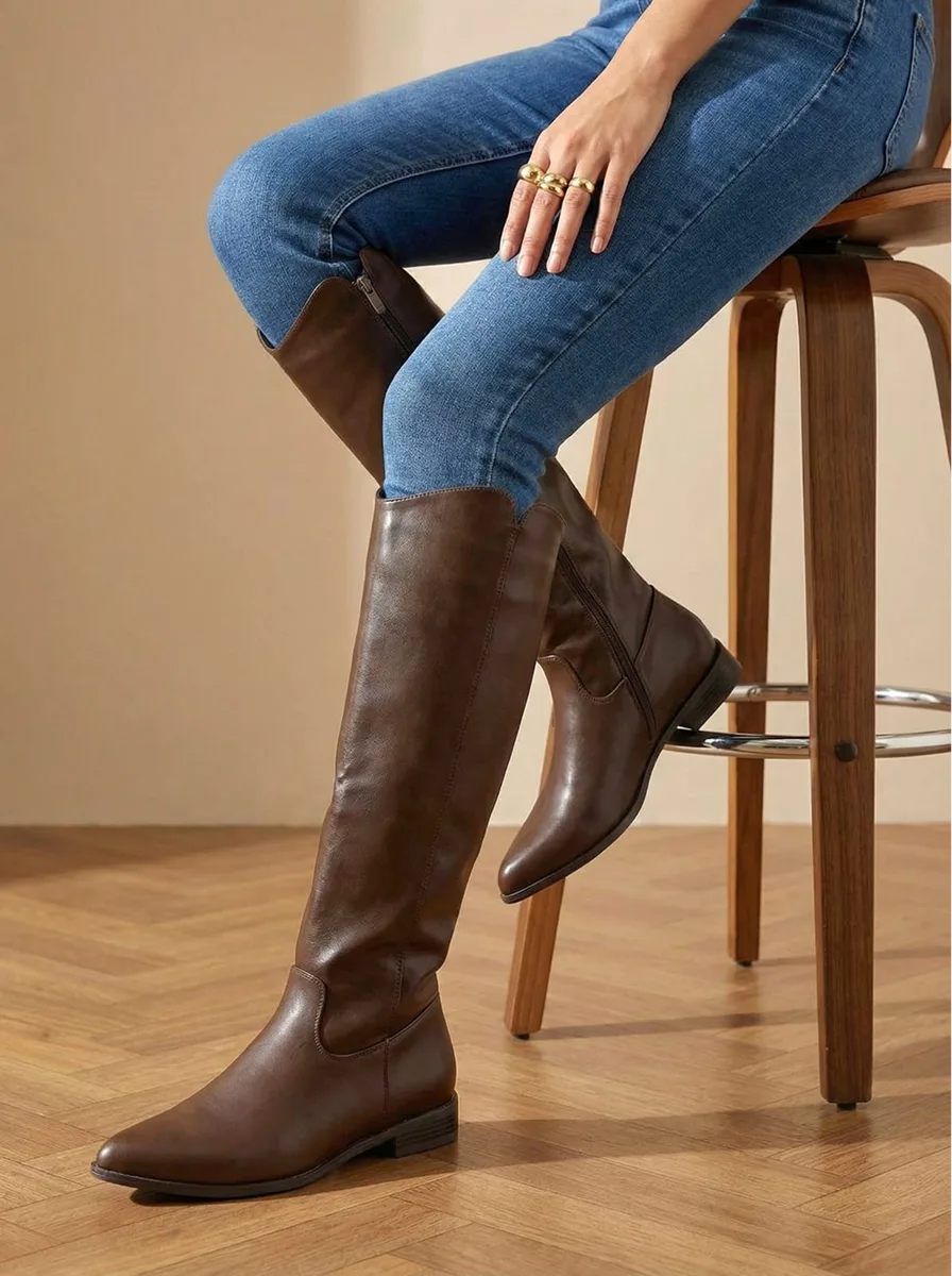 آخر قطعة!جزمه جلد بني طويل للنساء